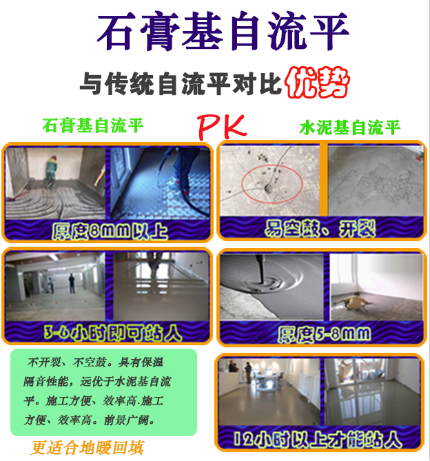 然而石膏基自流平材料就可以很好地解决这个问题,而且一次找平,满足饰面层的铺贴,也不会因为长时间开地暖而引起开裂,是家装地暖回填的佳选择。