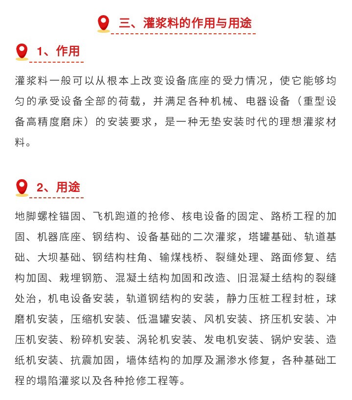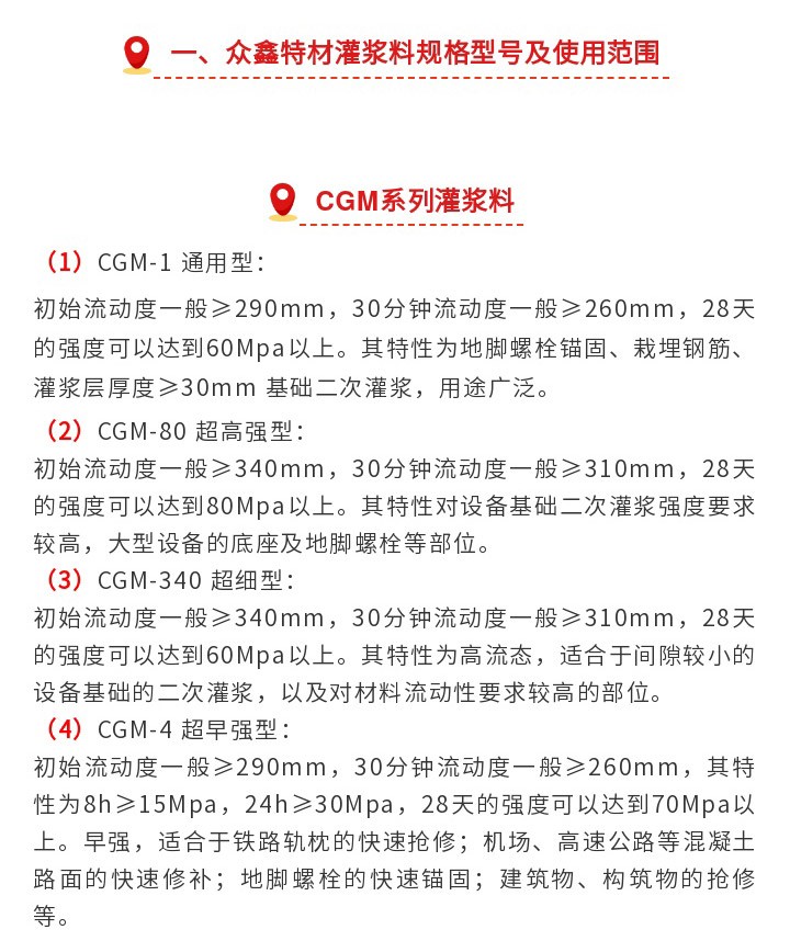 大连恒众鑫专业生产销售风电灌浆料,强度80Mpa,100Mpa,110Mpa, 120Mpa适用二次灌浆,设备基础灌浆,我们是大连灌浆料厂家,长春灌浆料厂家,有环氧砂浆,套筒灌浆料,PC座浆料、自流平砂浆等50多种产品,可满足您不同需求,有任何技术难题欢迎来电咨询:400-0411-552 众鑫特材期待您的光临!